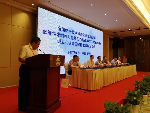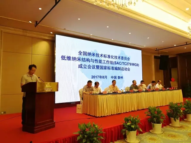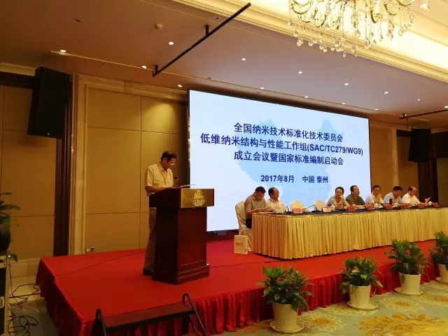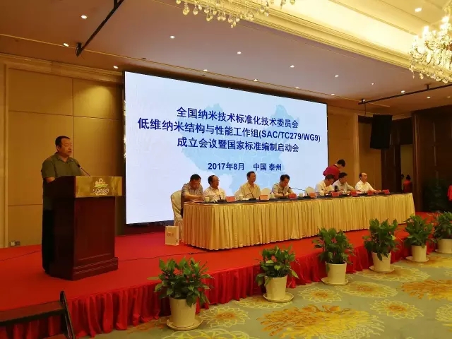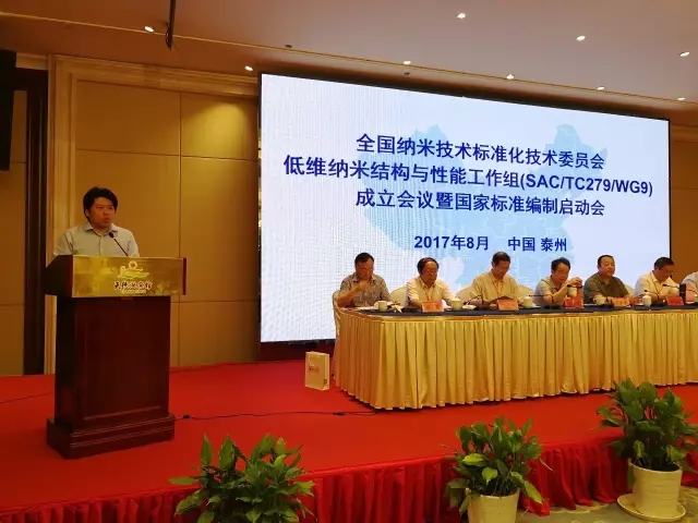 2017年8月21日,全國納米技術(shù)標(biāo)準(zhǔn)化技術(shù)委員會低維納米結(jié)構(gòu)與性能工作組(SAC/TC279/WG9)成立會議暨國家標(biāo)準(zhǔn)編制啟動會在泰州正式開幕。全國納米技術(shù)標(biāo)準(zhǔn)化技術(shù)委員會低維納米結(jié)構(gòu)與性能工作組(SAC/TC279/WG9)成立會議第一階段由泰州市質(zhì)量技術(shù)監(jiān)督局顧維中局長主持。