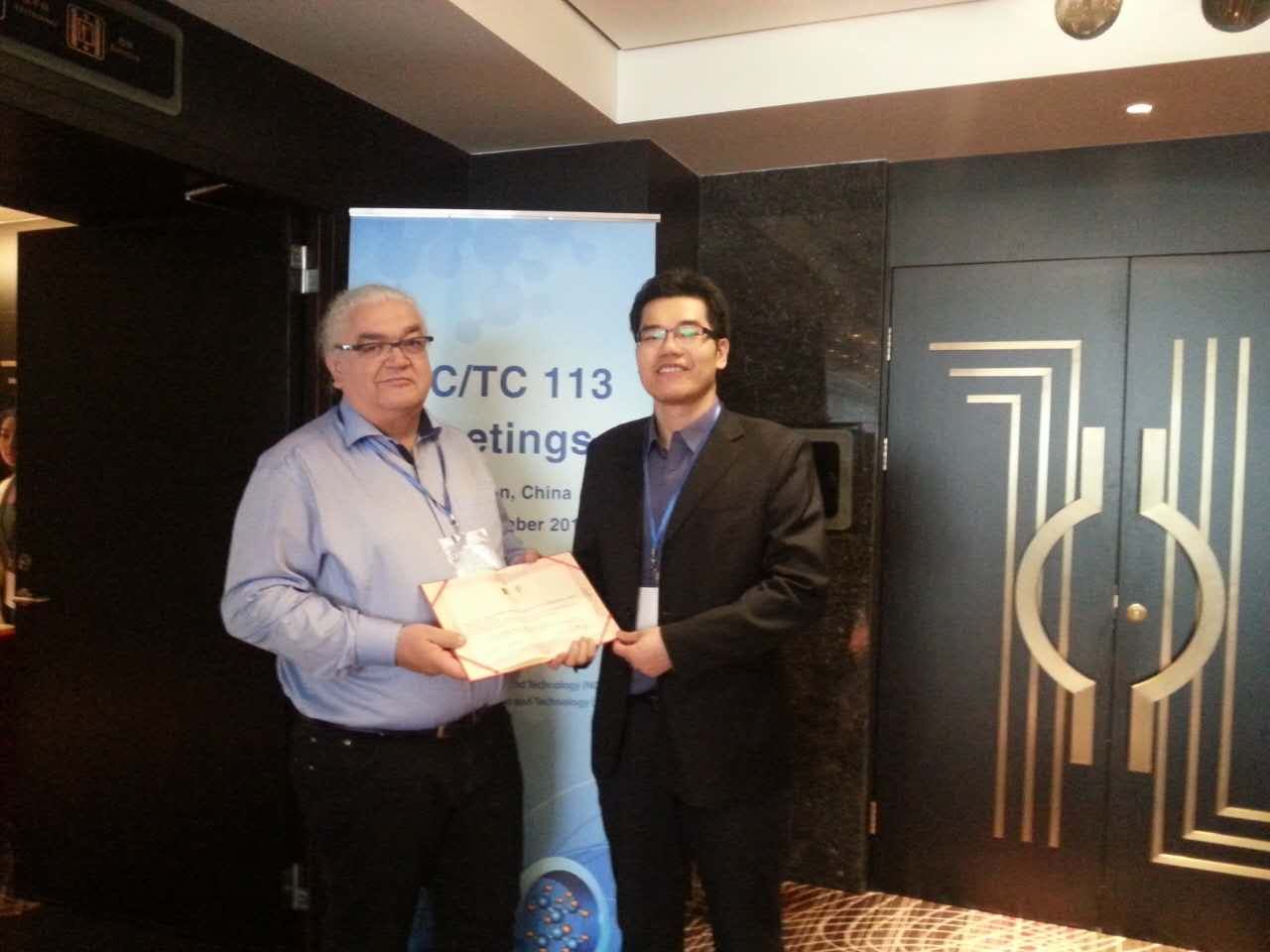 IEC/TC113國際納米電子標(biāo)委會秘書長Norbert博士接受中烯盟國際標(biāo)準(zhǔn)工作委員會(CIGIU/ISTC)國際秘書長聘書
