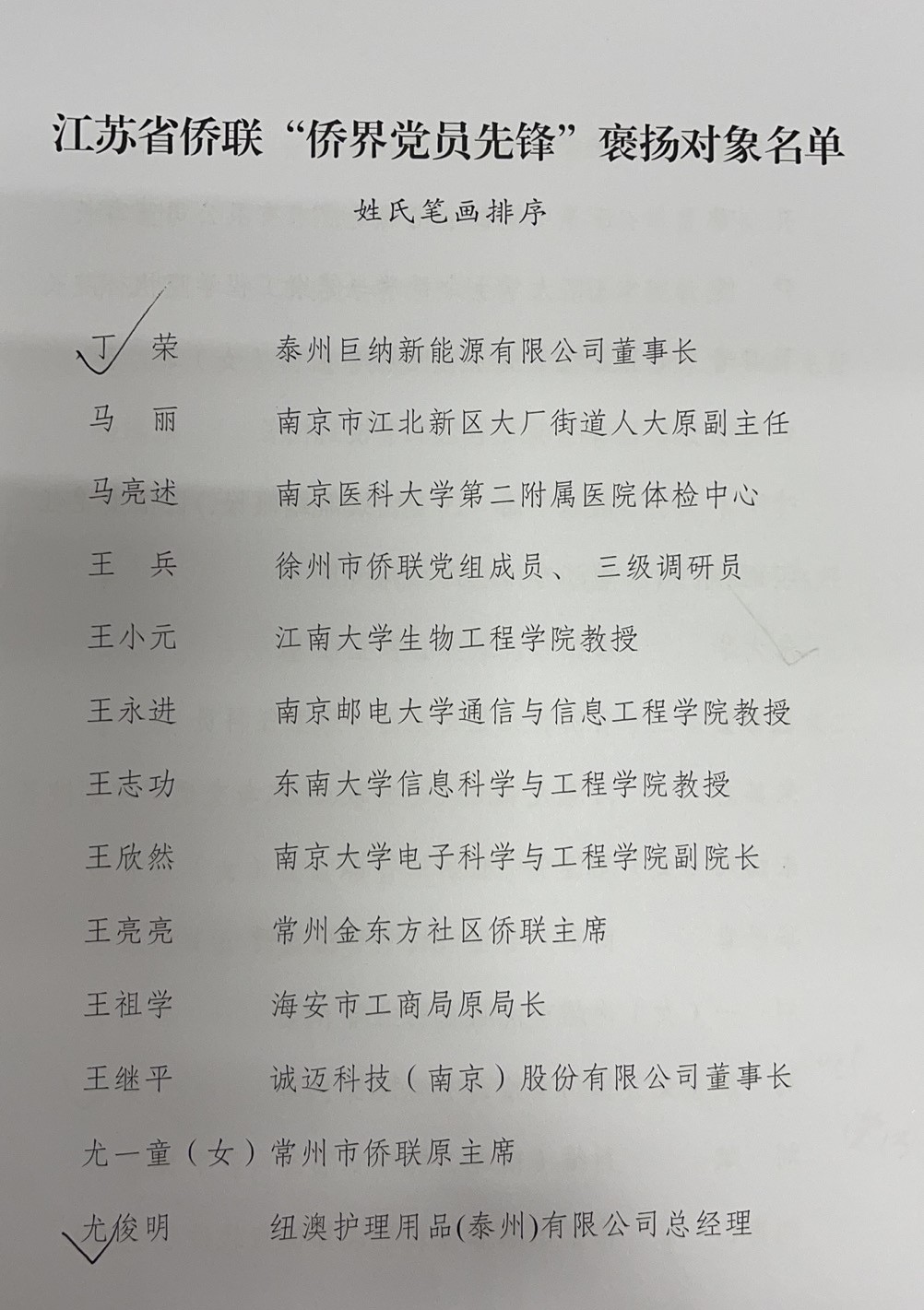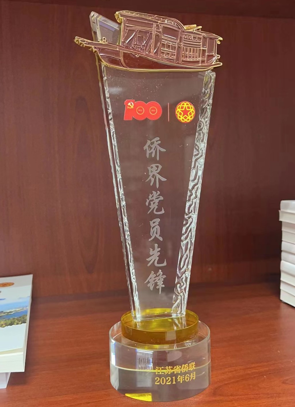 為慶祝建黨100周年,江蘇省僑聯(lián)在“七一”前夕組織“僑界黨員先鋒”褒揚活動,丁榮董事長獲評為“江蘇省僑界黨員先鋒”!