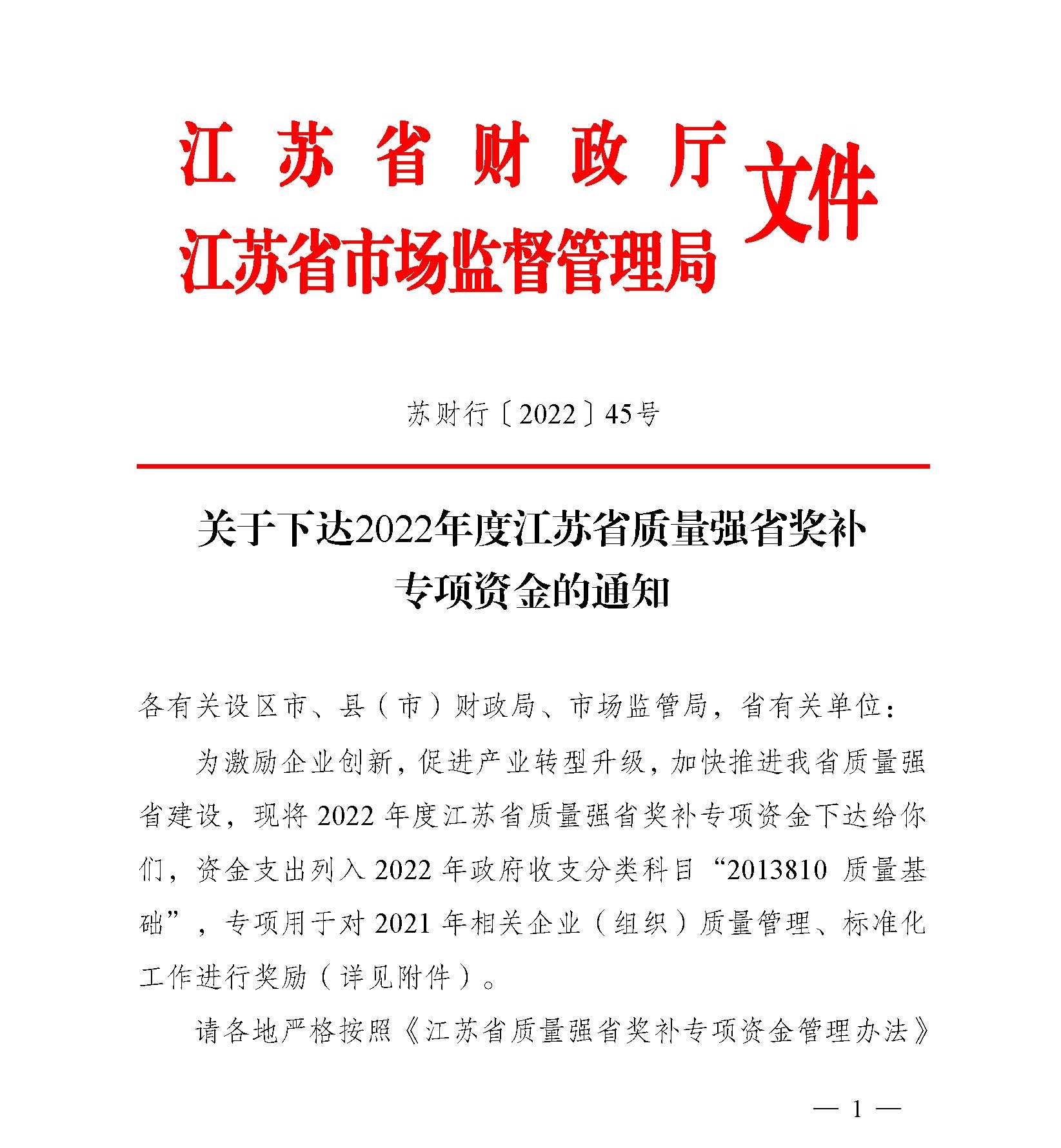 質(zhì)量強省獎補專項資金,是用于強化質(zhì)量發(fā)展基礎(chǔ)、促進質(zhì)量提升、推動標準化計量建設(shè)和支持廣告業(yè)發(fā)展的專項資金,專項用于對上年度相關(guān)企業(yè)(組織)質(zhì)量管理、標準化工作進行獎勵。