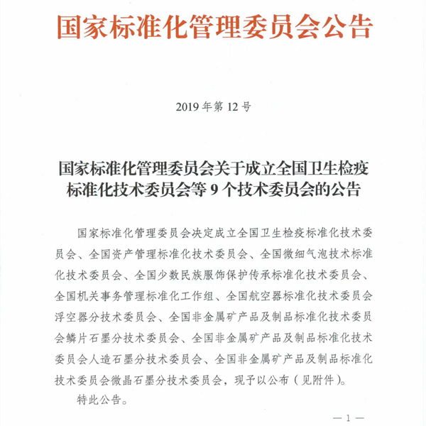 2019年11月11日,國家標準管理委員會發(fā)布2019年第12號公告,決定成立全國微細氣泡技術(shù)標準化技術(shù)委員會。