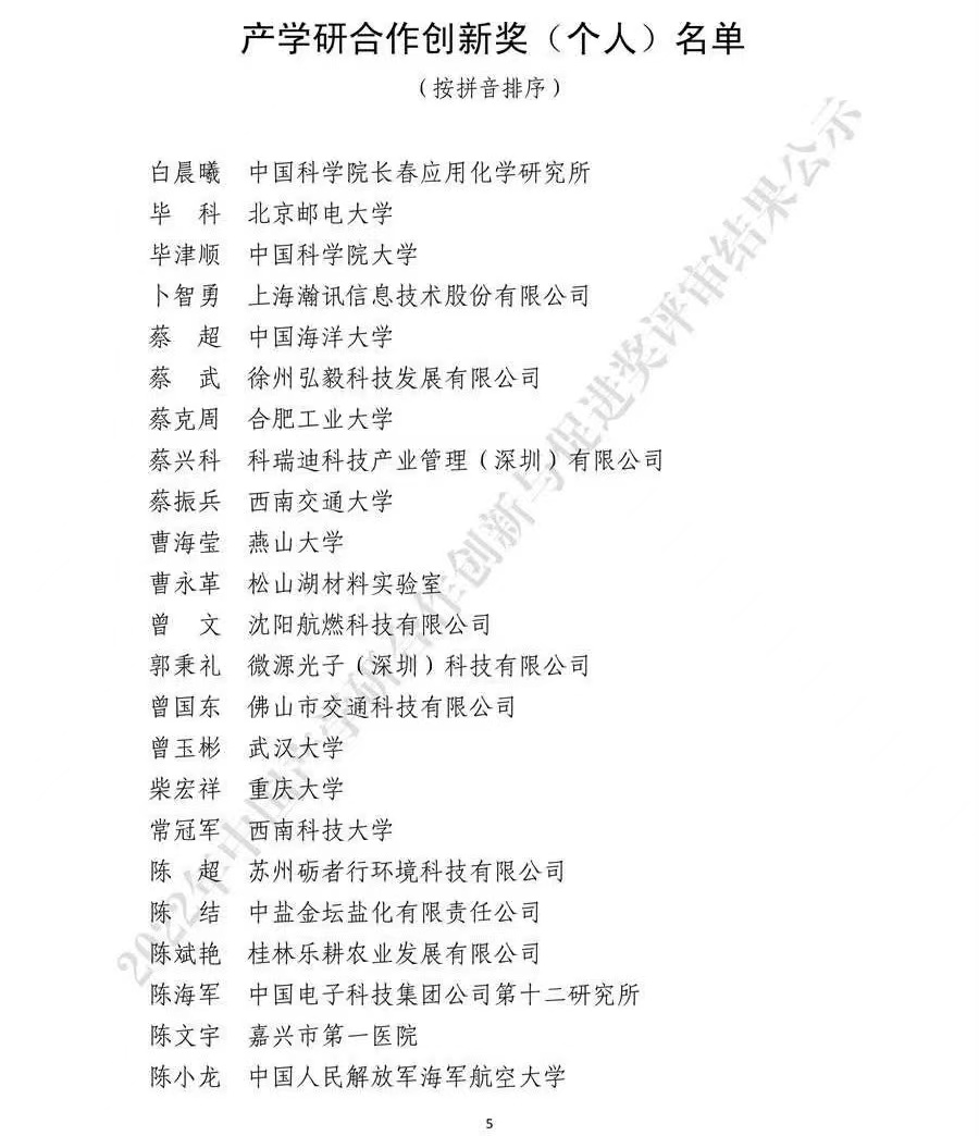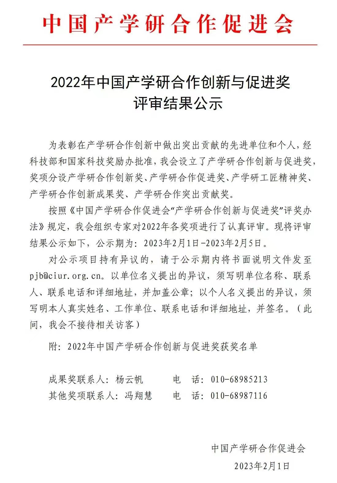 2023年2月1日,中國產(chǎn)學(xué)研合作促進(jìn)會公布了2022年中國產(chǎn)學(xué)研合作創(chuàng)新與促進(jìn)獎評選結(jié)果, 泰州飛榮達(dá)新材料有限公司獲得2022年中國產(chǎn)學(xué)研合作創(chuàng)新獎(個人)。